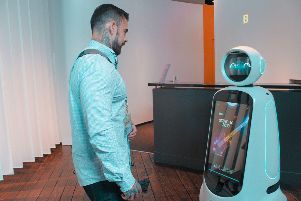 Bruno Maduro e o robô Cloi, um dos destaques da LG.